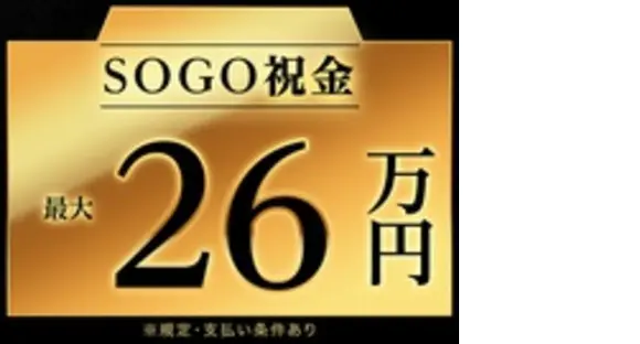 各種保険・手当、有給、制服あり、SOGO祝金最大26万円、通勤交通費別途支給