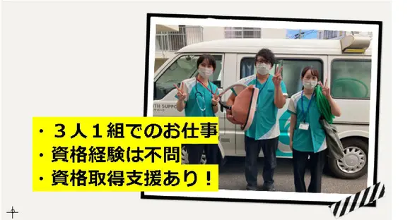 介護の資格が無い方や訪問入浴の経験が無い方でも、必ず3名体制で伺うので安心です!!