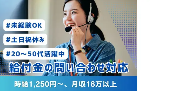 \時給1,250円、月収18万以上!/土日祝休み♪服装・髪型自由★自治体給付金のお問い合わせ対応★20代~50代活躍中!駅チカ通勤ラクラク◎