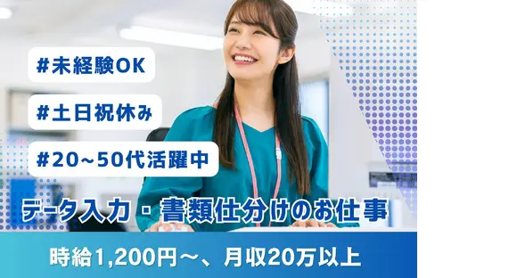 \時給1,200円、月収20万以上!/電話なし◎データ入力・書類仕分けのお仕事!通勤ラクラク♪服装・髪型自由★20代~50代活躍中!