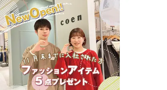 coen(コーエン) イオンモール須坂店/アパレル販売スタッフの求人アルバイトをお探しなら、『アップステージ』をご利用ください。