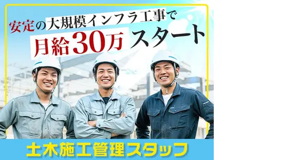 <安定>と<高待遇>をダブルゲット!土木施工管理STAFF募集☆未経験OK/寮あり/月給30万~!
