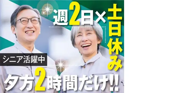 夕方だけの短時間&土日休み♪スキマ時間で月5万円のうれしいプラス♪60歳以上のシニア世代が活躍中!【食品工場清掃STAFF】
