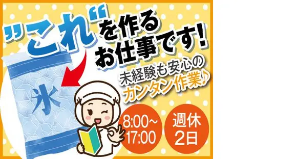 安心感も、働きやすさも。大手グループで新しい一歩を♪17時で退勤!週休2日&日曜は固定休み◎【袋入り氷づくり・軽作業スタッフ】