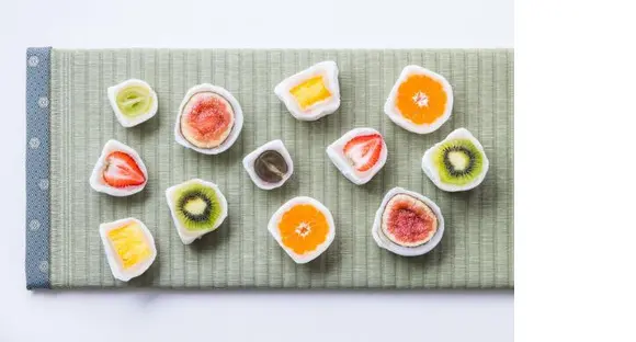 フルーツ本来の味を引き立てる白餡と求肥の⻩金比にこだわった
