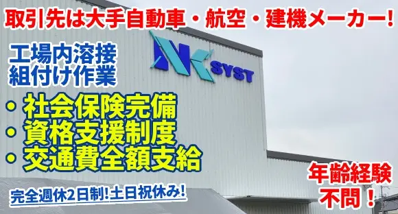 【溶接&組立】明るく活気ある社風が自慢!技術を磨きながら、大手自動車・航空・建機メーカーなど名の知れた大手企業のものづくりに携われます。業績も安定し、生涯安心して働ける環境です!