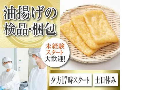 \夜型さんに◎/お昼までゆっくり、17時スタート!土日は休み♪20~50代男女活躍中!【油揚げの検品・梱包作業】