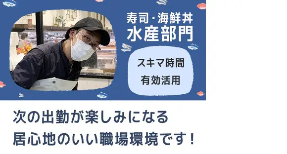 【水産部門】リニューアルにつき、オープニングスタッフ大募集!水産惣菜・お寿司作り!週3日、1日3時間からOK♪日曜日は時給UP↑↑20~50代活躍中☆