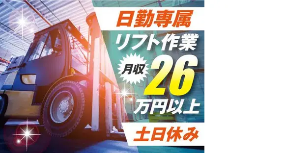 リフト免許を活かして活躍◎16時退勤で夕方からは自由時間♪土日祝休み&月収26万以上も目指せる!【倉庫内でのリフトスタッフ】