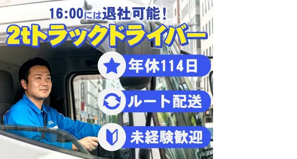 2tロングトラック(箱車)を使用し、京都市内・宇治市エリアの外食店舗へ食品・雑貨を配送するスタッフを募集しています。