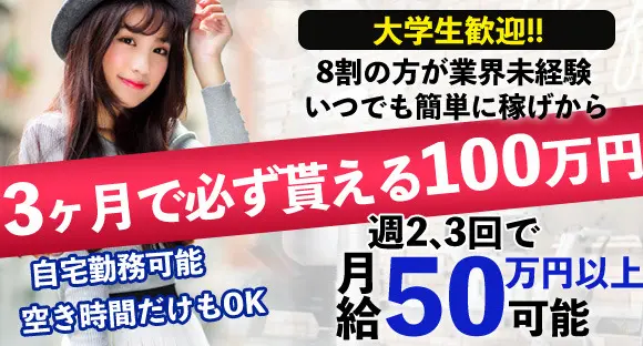 【3ヶ月で100万行かなければ100万支給】未経験スタートでも十分狙える環境です!安定して月収100万円以上可能♪学生の方勤務日の初月と翌月は10マン支給(規定あり)!ノルマなし!/完全在宅可能★