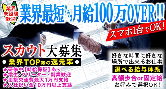 【未経験でもスマホ1台で簡単に《月給100万円》OVER!】貴方に最も合う先輩スタッフが全面サポートするので『業界最短』クラスで高収入を実現できます♪ ★大学生★フリーター★副業どなたでも大歓迎です!