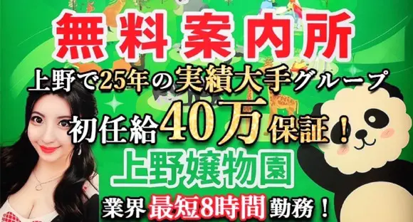 上野で25年の実績と安定力を誇るグループが案内所スタッフを初の大募集!【初任給40万保証】★【業界最短8時間勤務!】★【1日体験入社大歓迎!全額日払い!】