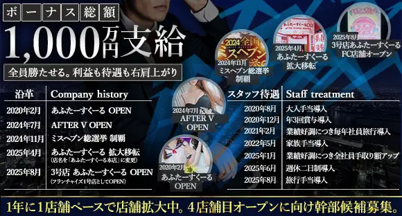 これまでのご経験や実績をしっかりと考慮した給与設定を行っています。 実際に、キャバクラで店長経験をお持ちの方は、入社時からサブマネージャー(月給50万円以上)としてスタートした実績もあります。