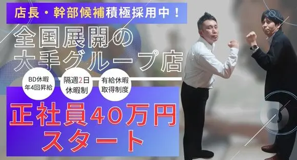 【店長・幹部候補募集中!】 エリア拡大につき空きポスト多数あり! 未経験の方でも既存の店舗で数か月働いて、実績や成果次第で、新店舗の立ち上げにかかわれたりそのまま店長クラスにもなれます! 店長のお給料は月給100万円以上も可能です!