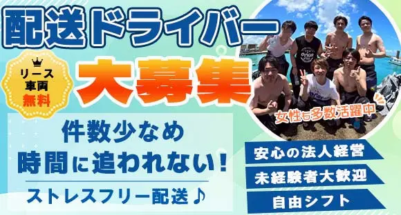 日払い・週払いOK、リース車両無料貸与(私用利用もOK)、さらに未経験でも安心の《日収保証》あり。