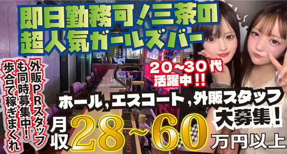 女性も活躍中!エスコートスタッフとして働いてくれる方急募!長らくナイト業界経験者大歓迎。相応の好待遇でお迎えいたします!ガールズバーなのでキャバクラよりも比較的ラフな感じで働けます。