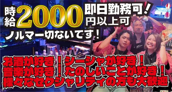 経験者の方でも、ガールズバー、キャバクラ、その他同業種で、お店の環境が合わなかった方など、きっと楽しく働くことが出来、しっかり稼げるので、是非一緒に働きましょう!