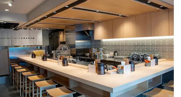 - カウンター11席と2名掛けテーブル1つの、全13席。