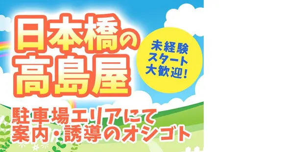 日本橋駅チカ《有名百貨店×駐車場警備》お客様や車両のご案内・誘導などシンプル業務だから未経験でも働きやすい♪週4日以上の勤務で日給UP☆週1日~OK!週払い&直行直帰&総額8万円手当支給!