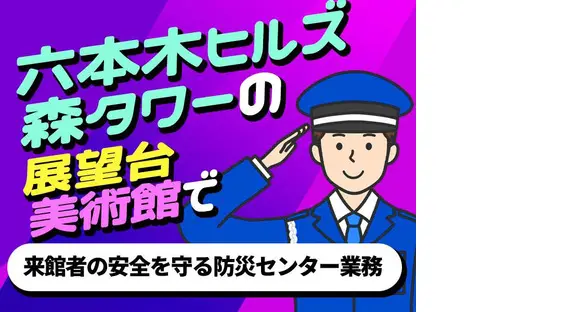 <六本木ヒルズ森タワー×施設警備>展望台・美術館エリアがあなたの職場♪選べる日勤or夜勤⇒日勤は活気ある中で楽しく、夜勤はお客様がいない時間だからマイペースに働ける◎週3日~OK!日給13,908円~