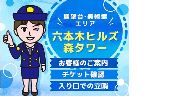 <六本木ヒルズ森タワー×案内警備>巡回や入館証管理など色々な仕事があるから飽きずに働ける◎選べるシフトパターン多数でライフスタイルに合わせやすい♪入社祝い金5万円支給!資格手当あり!週3日~OK◎