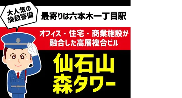 \MAX日給1万5,848円/高日給で効率的に稼ぎたいアナタにピッタリ♪六本木一丁目駅スグの仙石山森タワーで受付・巡回などのシンプル業務◎選べる日勤or夜勤で昼型さんも夜型さんも安心!入社祝い金5万円