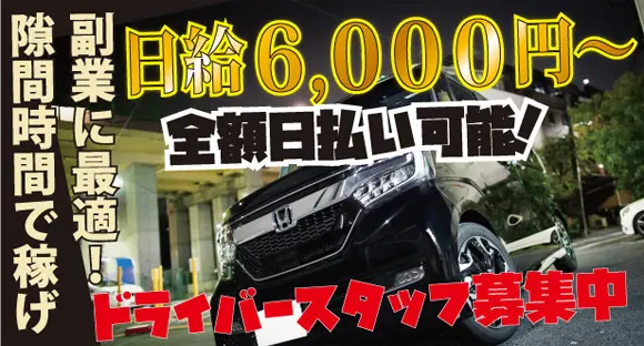 全額日払い可能で高速代やガソリン代も支給します!サラリーマンのWワークとしても最適です!