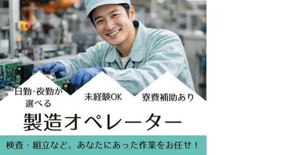 簡単作業で未経験も安心◎製造オペレーターの募集!働き方も選べて寮なども完備しているので新しい生活を始めるのにピッタリ!即日払いOKで安心◎長期休暇あり!