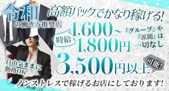 時給1600円〜1800円!高額インセンティブ付与中!月100万円近く稼ぐスタッフも急増中♪ 派閥やグループも一切なし!楽しく働けるお店♪ 20代〜30代幅広く積極採用中!