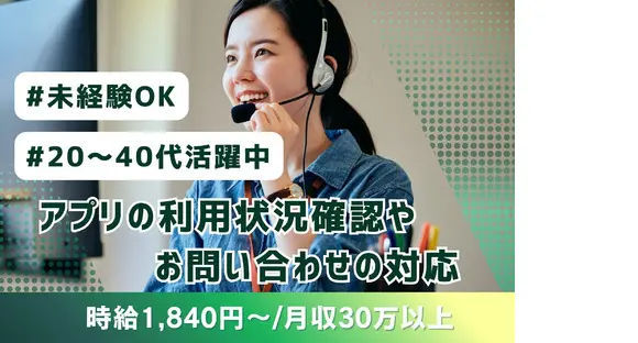 \駅チカ通勤ラクラク♪未経験OK/週5・時給1,840円~で月収30万も目指せる!即日入社可◎服装自由★アプリの利用状況確認やお問い合わせの対応のお仕事です!