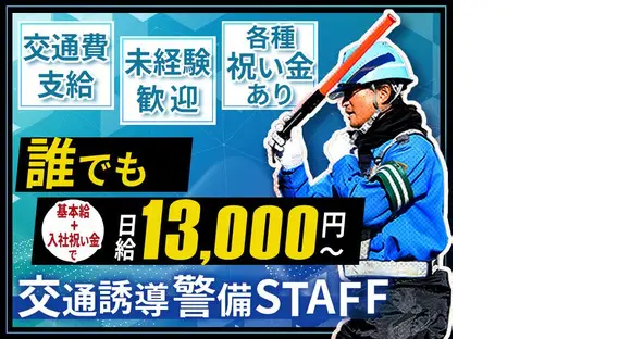 未経験でも日給13,000円~★研修期間中1日5,000円ずつ現金支給!【入社祝い金総額10万円】警備の経験を活かせる交通誘導警備STAFF!