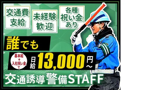未経験でも日給13,000円~♪研修期間中1日5,000円ずつ現金支給!【入社祝い金総額10万円!】警備の経験を活かせる交通誘導警備STAFF!