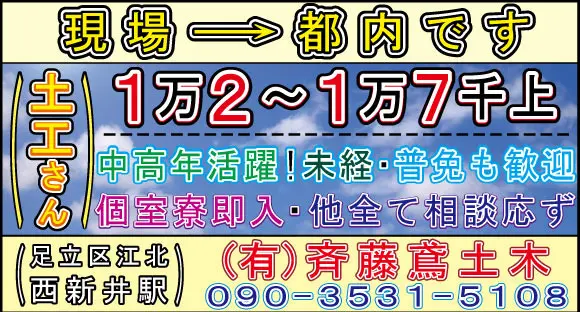 【土工】即決で即お仕事!寮完備・食事付き!内金あり!働きやすい環境でバッチリ稼げます! 定年者・高齢者も活躍できる環境です!