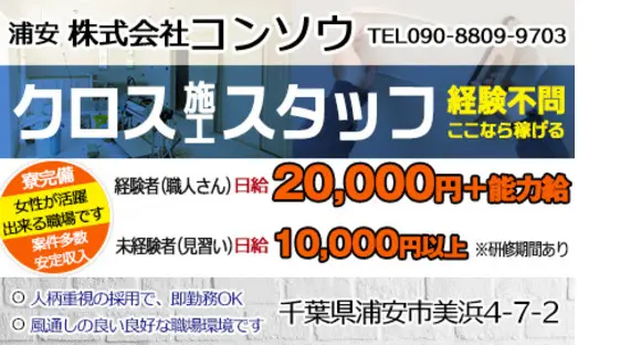 ★クロス工《経験不問》稼げる!日給20,000円+能力給★経験不問★残業殆どなし★確かな仕事で案件豊富・安定収入!資格☆あなたのやる気・熱意なんです♪業績好調でスタッフが足りません!