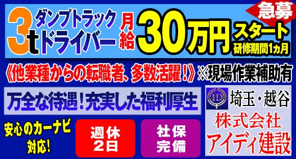 ◆急募!!3tダンプドライバー◆ 転職者多数入社中! 給料の支払い方、相談に乗ります!◎充実の福利厚生◎ 未経験の方、転職者の方活躍中! <新年度の働き方改革にも対応済み>