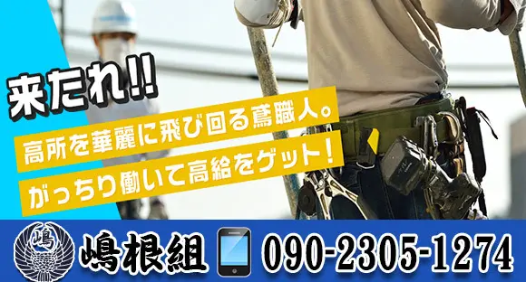 鳶職として働きたいやる気のある方を歓迎しております。 足場工事やその他ゲンバ系仕事の経験は問いません。 未経験から始めても働き次第で高い給与を保障します。