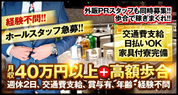 ナイトワーク未経験でも、安心の月給40万円スタート。売上に応じたインセンティブや昇給もあり、リーダーポジションになれば手当込みで基本給50万円以上も可能です!