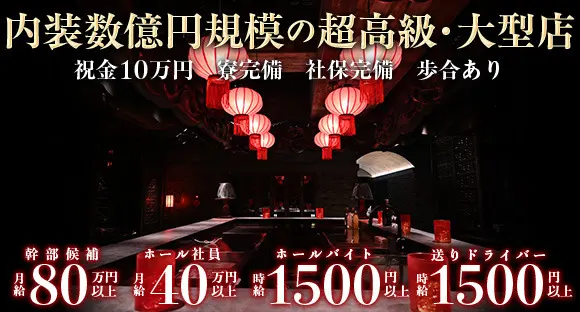 【祝金10万円】VIP・セミVIPルーム7部屋!内装費数億円規模の超高級・大型店!年齢不問!待遇◎給与◎寮完備◎やる気次第でどこまでも稼げます!