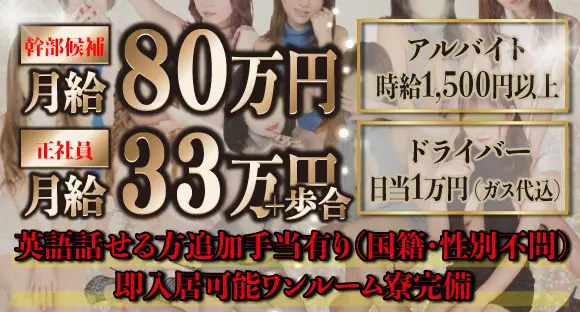 童貞セーターの女の子達を眺めながら楽しくお仕事しませんか。未経験者でもホールスタッフを月給33万円+歩合(大体50万円位)大募集! エスコートやドライバーなども同時募集しております。