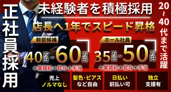 【業界未経験・他店移籍・ブランクからの復帰も歓迎◎】ナイト業界未経験者、自分を変えたい、同年代よりも圧倒的に稼ぎたい、都会で勝負してみたい、店舗経営を学びたい・やってみたい、単純にナイト業界が好き、など、前向きな理由であればどなたでも歓迎です!若い世代が活躍している当店なら昇格や独立まで最短距離◎