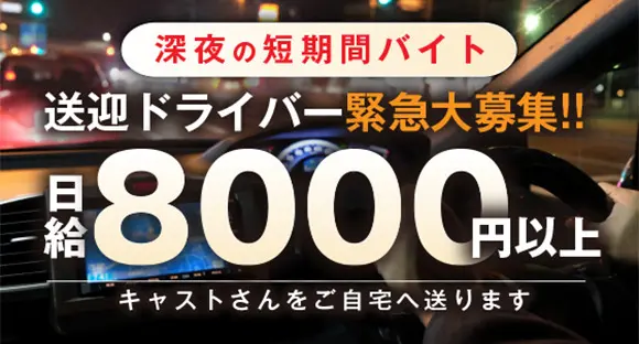 お仕事は至って簡単!仕事が終わったキャストを車でご自宅へ送り届けるだけです!ガッツリ稼ぎたい方にも、スキマ時間の活用も出来る!