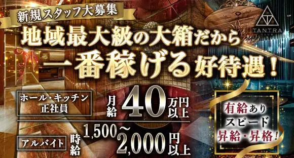 CLUB TANTRA(タントラ)の求人アルバイトをお探しなら、『アップステージ』をご利用ください。