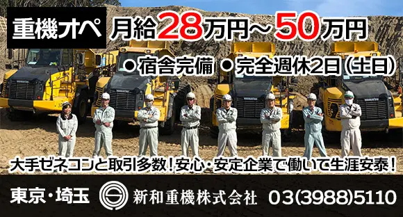 【重機オペ・現場管理】男女問わず活躍中です!未経験でも高額月給スタートでスキルも身に付きます!大手ゼネコンとの取引が多いので、生涯安泰です!安心して働くことができます♪