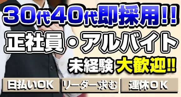 20代,30代.40代活躍中!! 未経験でも意欲があれば大歓迎! 他業種から一般職からの転職者、大歓迎です! 真面目な方は即採用です!