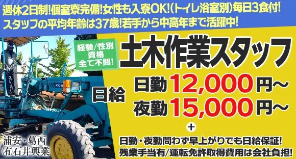 【現場作業員】経験・性別・資格不問!個室寮完備&女性が入寮可能な個室寮もあります◎運転免許も会社の費用で受験可能です♪資格取得のサポートが万全なので初心者も働きやすいです!若い世代も活躍中☆