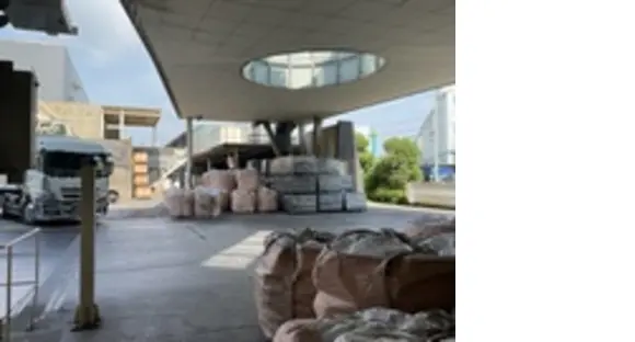 (1)ベルトコンベアーで流れてきた金属類が粉砕された後にフレコンバッグに流れ込みます。 満タンになったらそのフレコンバッグをフォークリフトで移動し構内端に並べます。その際に計量し、重量を記録します。
