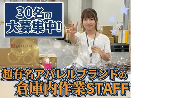 【超有名アパレルブランド】の物流倉庫スタッフ☆30名の大量募集中!未経験大歓迎◎時短勤務・勤務週2~OK/嬉しい社割制度あり☆