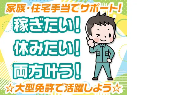 大型免許でキャリアアップしたいあなたへ!>>年収520万円以上も可能!賞与年3回+充実の福利厚生+お休みもしっかり☆ブランク大歓迎!日勤&日帰りの【近距離配送ドライバー】20~40代活躍中!