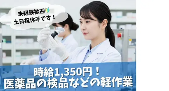 医薬品の目視検査や梱包などの軽作業スタッフ/高時給1350円~◎土日祝休み&髪型自由♪超シンプルな軽作業で未経験さん&女性も大活躍中です♪プライベートと両立可能◎#QUOカードプレゼントキャンペーン中